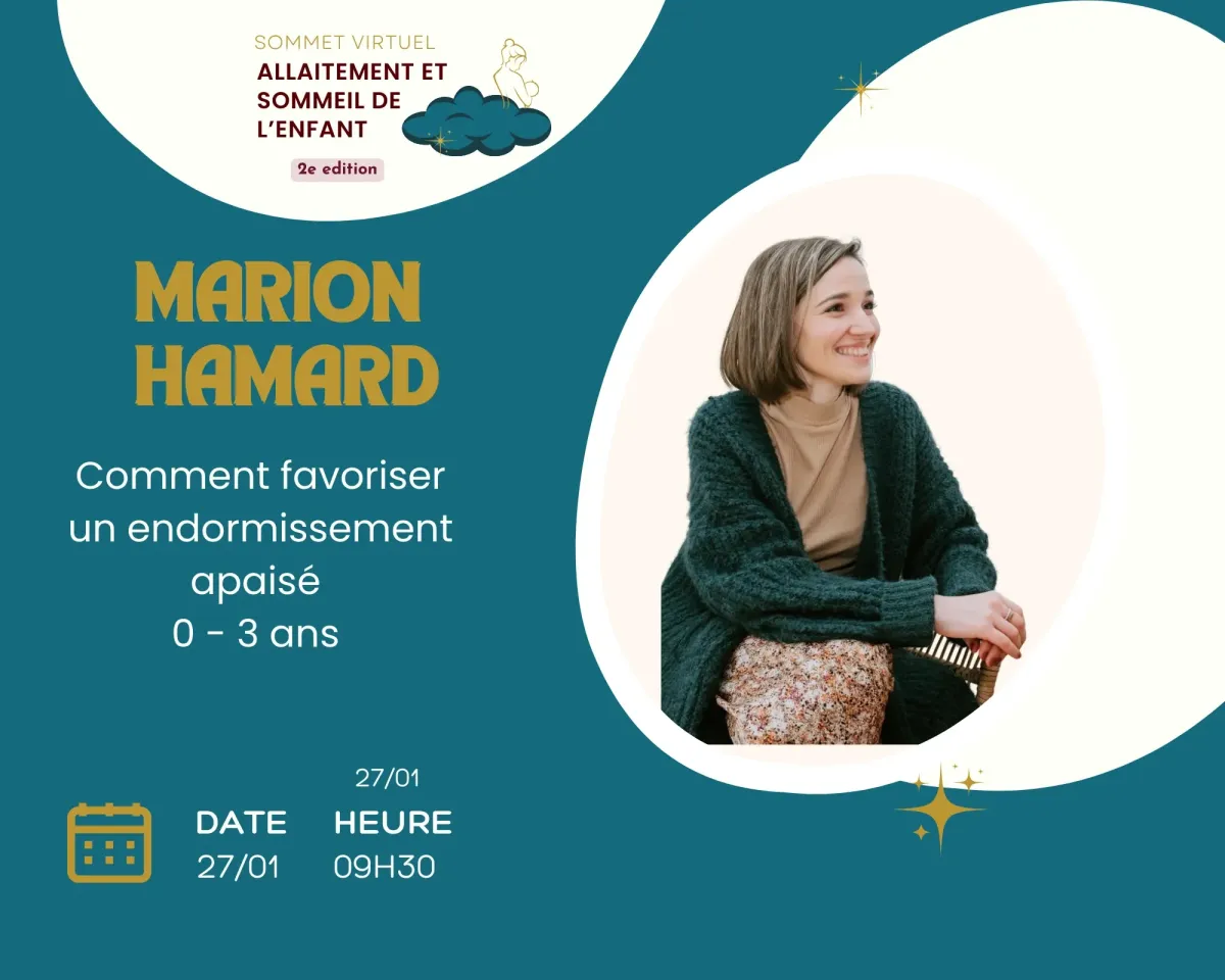 Marion Hamard est accompagnante parentale, spécialisée dans le sommeil des bébés et des jeunes enfants (0–6 ans). Issue d’études en psychologie et d’un parcours professionnel riche au contact des enfants, elle accompagne depuis 2021 les parents autour des émotions de l’enfant, de la coopération au quotidien, des relations fraternelles et, plus particulièrement, du sommeil.
